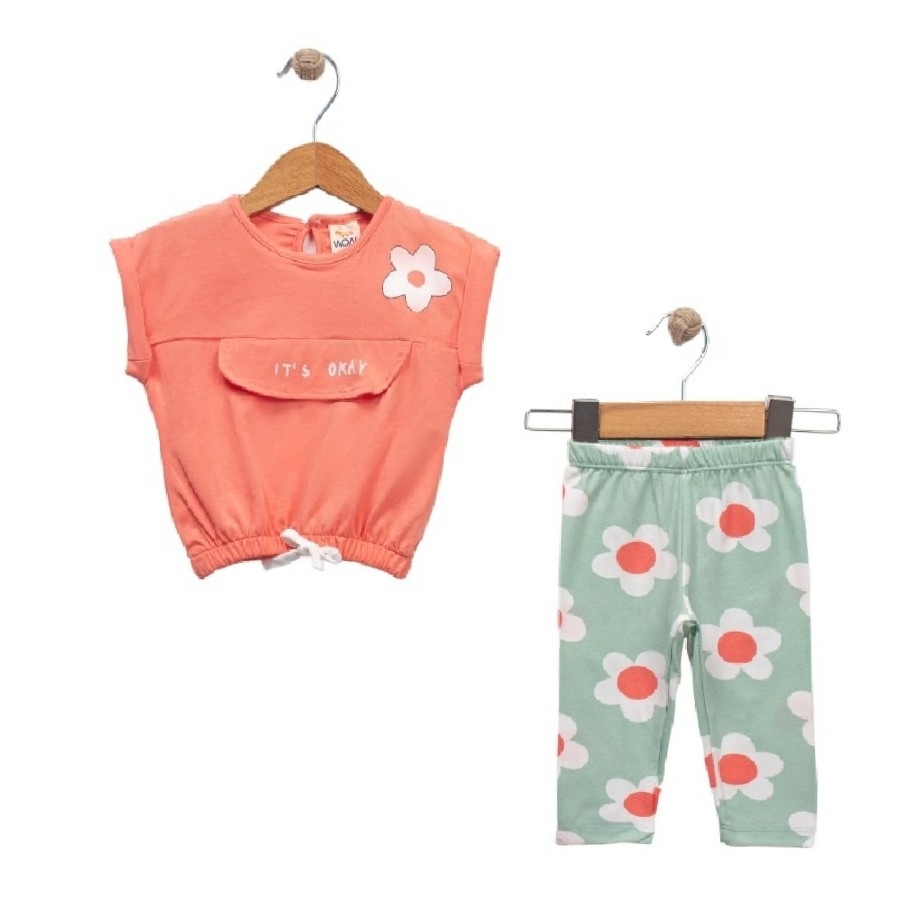 Çiçekli ve renkli modeliyle tam yazlık takım ✨ Pamuklu ve esnek kumaşı sayesinde bebeğiniz rahat şekilde hareket eder ✨ İkili takım olarak gönderilir ✨