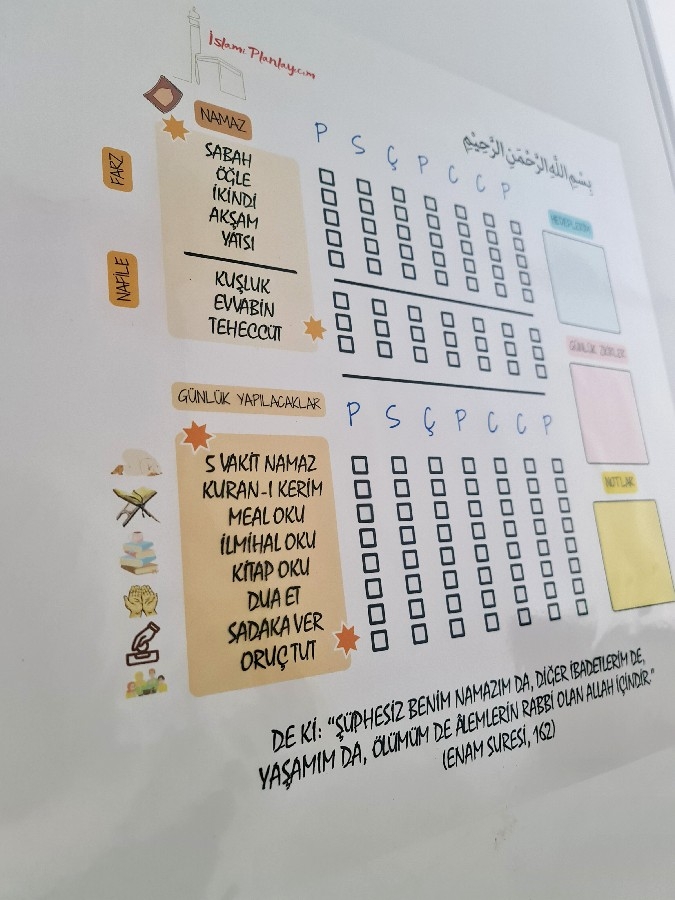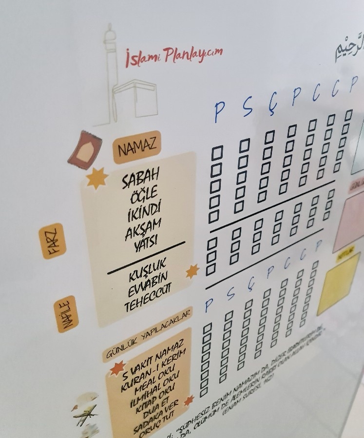 Tamamen Özel Tasarıma sahip ürün manevi sorumluluk kazandırmaya yönelik üretilmiştir. 50*50 cm dir. Tasarımı sade, kullanışlı, ilgi çekicive renkleri canlıdır. Şeffaftır ve uygulandığı yüzeyin rengini almaktadır. Kendine ait kilit başlıklı tüpü ve kullanım kılavuzu ile gönderilmektedir. Ürün Kullanım Talimatları: Ürünü halıya, masaya, yere açma serme yapmayınız. Duvara, cama, tahtaya uygulanır. Kolay kurulumludur. Yapıştırma gerektirmez, kendiliğinden yapışır. Nemli bez yada ıslak mendil kullanılmaz, kuru silme yapılmalıdır. Yaz-Sil ürünlerde beyaz tahta kalemi kullanılır. Uygulamadan önce yüzeyin tozunu mutlaka alınız. Kıvrım yeri içeride kalacak şekilde uygulanır. Sürekli söküp takma da tutunma özelliği azalır. Aşırı pürüzlü yüzeylerde tutunma özelliği az olabilir. Daha fazla tutunma için çift taraflı bantla desteklenebilir. Patentli üründür.