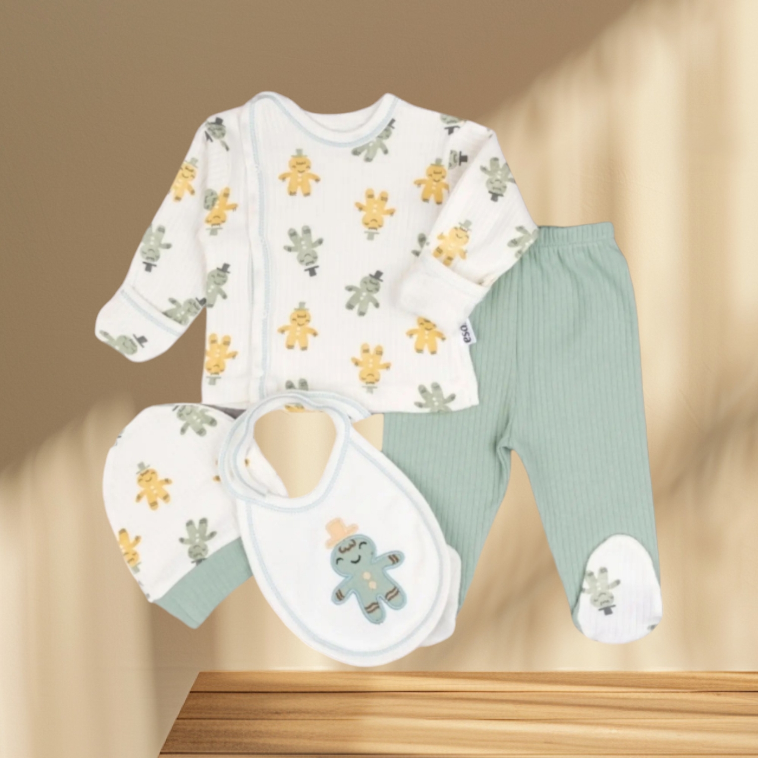 👼🏻1 TAKIM PAMUKLU 4 PARÇA KENDİNDEN ELDİVENLİ HASTANE ÇIKIŞI (0-6 AY UYUMLU)